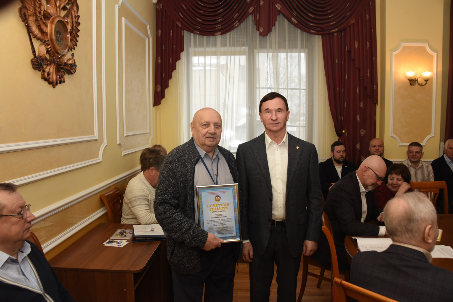 Владимир Маркович Стеренко награжден почетной грамотой Межрегиональной общественной организации «Союз ветеранов РВСН» за инициативу, усердие, активную работу по развитию ветеранского движения в РВСН и в связи с 85-летием образования филиала ВА РВСН имени Петра Великого.